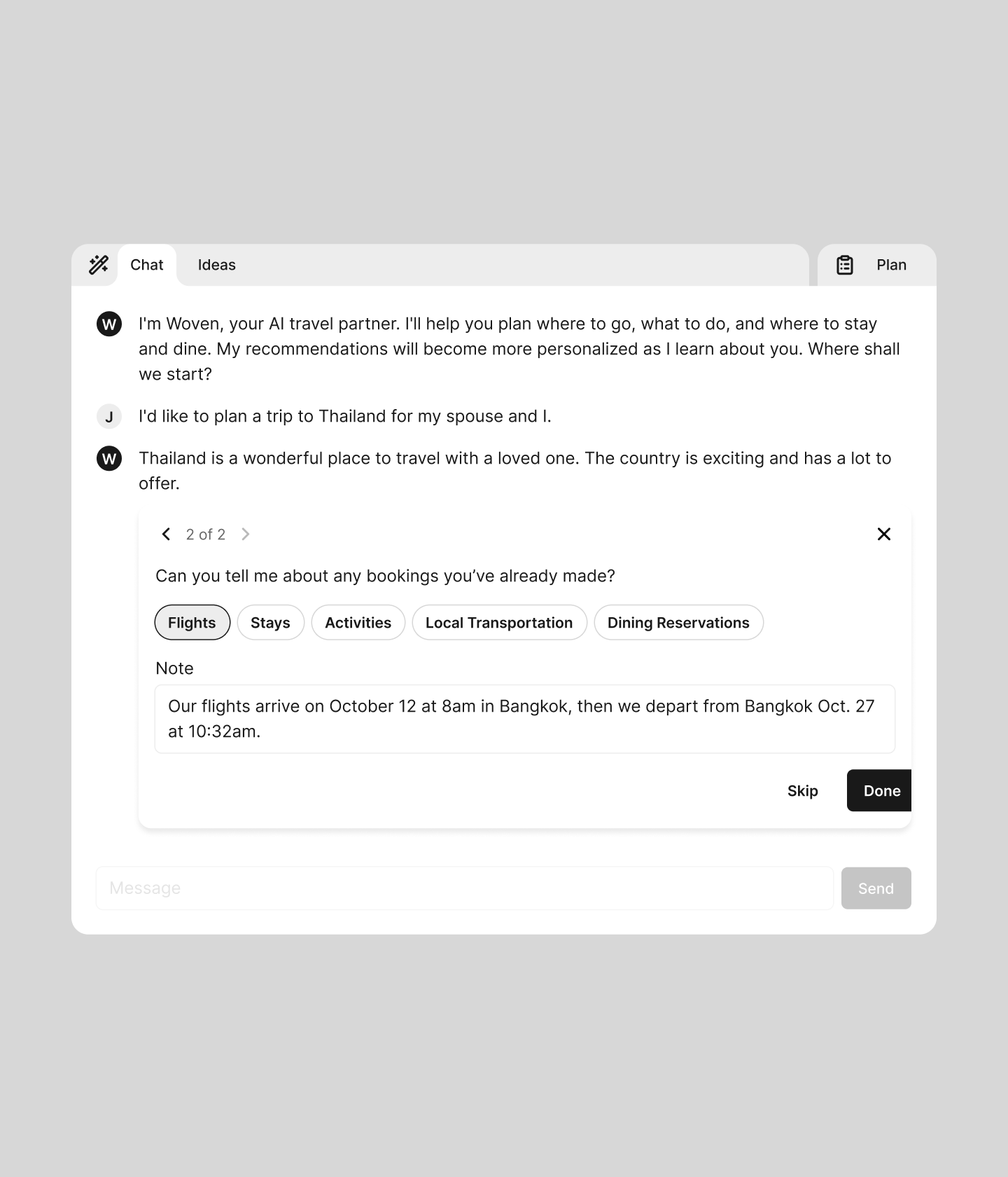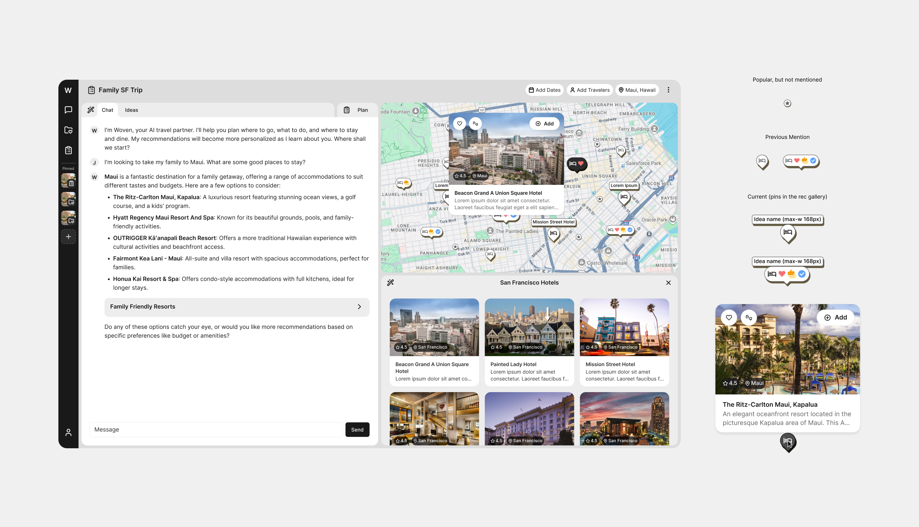 Woven was a travel partner that delivered personalized recommendations for your travel experiences. Woven engaged with users to learn their preferences, understand destinations, and provide curated suggestions for trips and local outings.